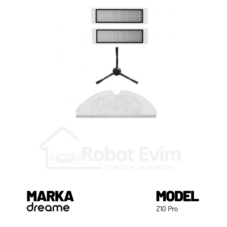 Dreame marka Z10 Pro modeli robot süpürgeniz için Orjinal fırçasız aksesuar seti. Paket içeriği; 1 adet yan fırça, 2 adet hepa filtre, 1 adet Mop Bezi içermektedir.