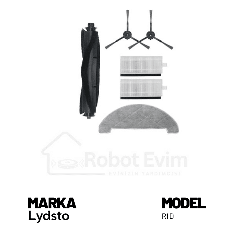 Lydstro marka R1D modeli robot süpürgeniz için Orjinal siyah ikili aksesuar seti. Paket içeriği; 1 adet ana fırça, 2 adet yan fırça, 2 adet hepa filtre, 1 adet mop bezi
