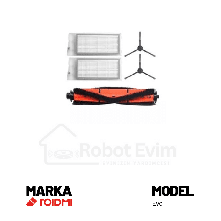 Roidmi marka Eve modeli robot süpürgeniz için Orjinal aksesuar seti. Paket içeriği; 1 adet ana fırça, 2 adet yan fırça, 2 adet hepa filtre
